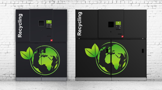 - Reverse vending of disposable and reusable PET containers, glass bottles, cans, cups with EAN-code and beverage cartons