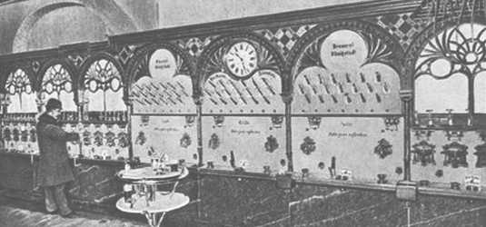 1895 wurden die ersten Flüssigkeitsautomaten von Max Sielaff aufgebaut. Daraufhin entstanden das "Buffet" und schließlich das "Restaurant".